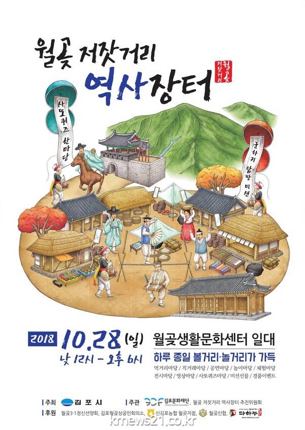 김포문화재단(대표이사 최해왕)은 오는 28일 오후 12시부터 6시까지 월곶생활문화센터(구 월곶면사무소) 일대에서 ‘월곶 저잣거리 역사장터’를 개최한다.