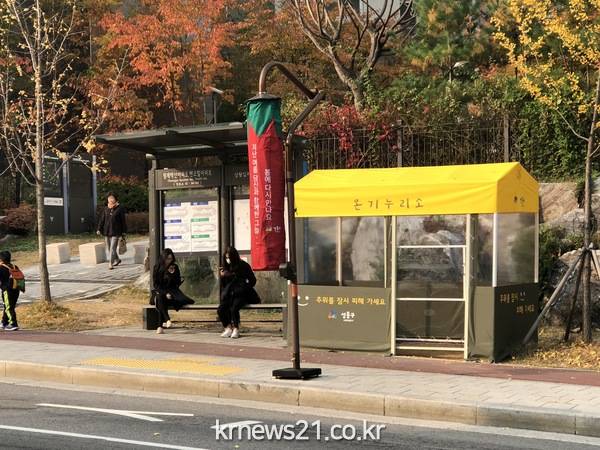 ▲ (사진=성동구청)성동구(구청장 정원오)가 겨울철을 맞아 매서운 추위를 피할 수 있는 버스정류장 바람막이 공간인 ‘온기누리소’를 오는 11월 15일부터 운영을 시작한다.