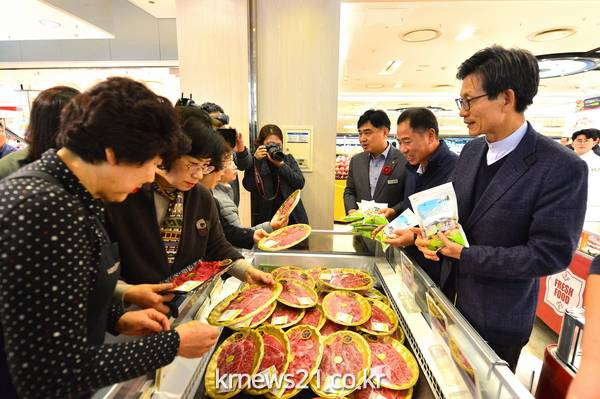 (전북/뉴스21)김문기기자=지난해 미국 트럼프 대통령이 방한 때 국빈만찬에 오른 명품 고창 한우가 16일부터 오는 22일까지 전국 롯데백화점 33개 전점에서 특별 판매된다.