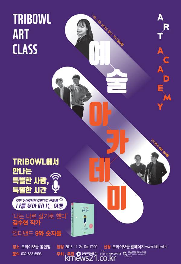 ▲ (사진=인천문화재단)(재)인천문화재단이 운영하는 송도의 예술공간 트라이보울에서는 오는 24일 베스트셀러 ‘나는 나로 살기로 했다’의 김수현 작가와 함께하는 트라이보울 예술아카데미<나를 찾아 떠나는 여행>을 진행한다.
