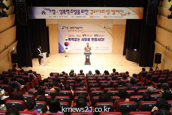 보령시는 성폭력 추방 주간을 맞아 28일 오후 보령문화의 전당 및 시가지 일원에서‘가정·성폭력 추방 결의대회’를 개최했다.