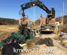 사진은 영농폐기물 수거 장면