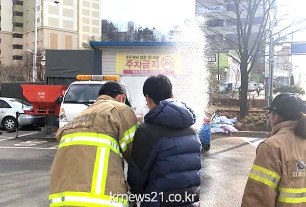 ▲ (사진=김포시청)풍무동행정복지센터(동장 유정호)에서는 지난달 30일 오후 2시 중앙119안전센터와 합동으로 소방훈련을 실시했다.