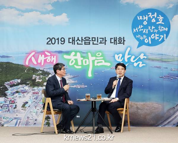 맹정호 서산시장이 대산읍을 방문해 민선 7기 첫 새해 시민과의 대화를 실시하며 본격적인 소통행보에 나섰다.
