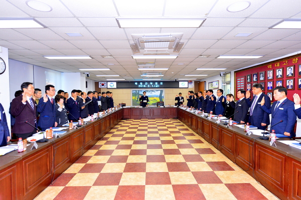 고창군(군수 유기상)이 지난 1일 고창군청 2층 상황실에서 군수를 비롯한 각 부서장과 직속기관장, 읍·면장 등 군 산하 모든 간부공무원 40명이 참여한 ‘청렴서약 실천 결의대회’를 열었다.