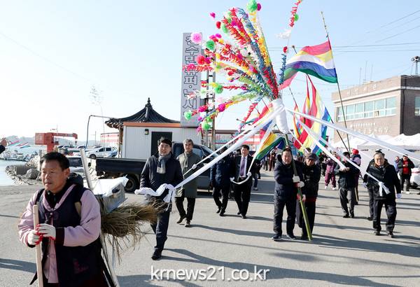 이날 포구에서 만선 깃발을 꽂는 용왕제를 시작으로 농악대와 함께 풍어를 기원하는 판 굿을 벌인 뒤 임경업 장군의 영정이 모셔져 있는 영신당으로 올라 제를 올렸다.