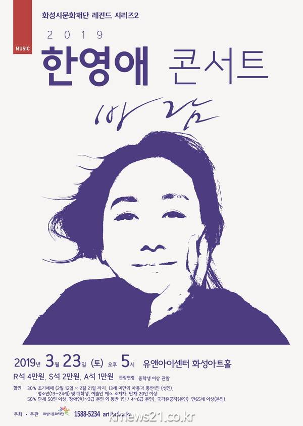 ▲ (사진=화성시문화재단)2019년을 맞아 화성시문화재단에서 야심차게 준비한 ‘2019 레전드 시리즈’의 주인공 가수 한영애가 3월 23일(토) 화성아트홀 무대에 오른다.