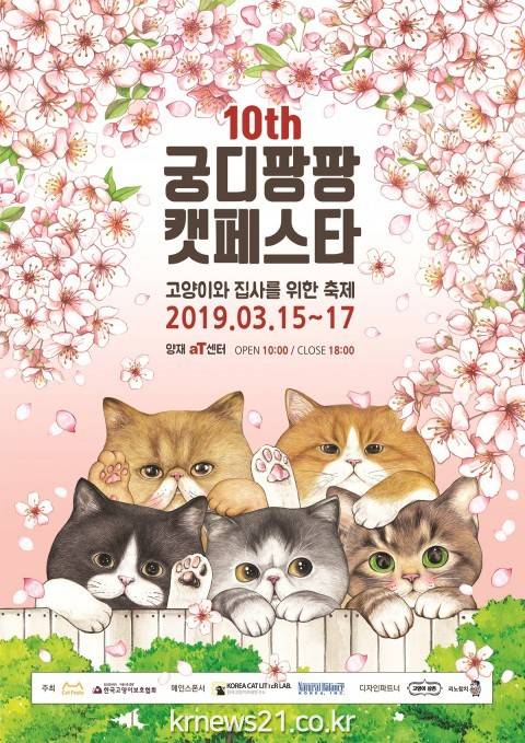 2019년 3월 13일-- 국내 최대 규모의 고양이 박람회 ‘제10회 궁디팡팡 캣페스타’가 3월 15일부터 17일까지 3일간 양재 aT센터에서 개최된다.
