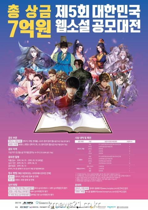 문피아와 한국대중문학작가협회가 공동 주최하는 ‘제5회 대한민국 웹소설 공모대전’의 자세한 사항은 문피아 홈페이지 및 앱에서 확인할 수 있다.