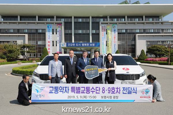 시는 지난 9일 오후 시청 광장에서 김동일 시장과 김혁연 충남지체장애인협회 보령시지회장 등 관계자가 참석한 가운데 장애인 콜택시 8호와 9호 전달식을 가졌다고 밝혔다.