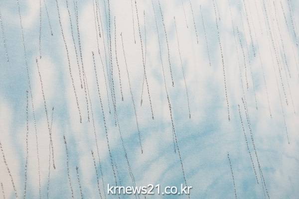 ▲ [사진=Rain or Shine]전시 작품 "Rain or Shine"시리즈는 광목천에 은은히 번지는 발묵(發墨)법의 사용으로 꽃잎이 떨어진 후 바람에 흔들리는 수목(樹木)의 이미지를 표현하고, 반짝이는 은빛 실로는 버드나무 가지의 결을 바느질 하여 중첩했다. 기존의 한국화 형식을 새로운 기법으로 시도 하였지만 근본은 전통적 화법이 활용되었다. 비록 꽃은 졌어도 늦봄 뒤엔 싱그러운 여름이 찾아오고, 아무리 추운 겨울일지라도 버드나무는 싹을 틔울 준비를 하며 새 봄을 기다리는 희망의 메시지가 담긴 작품으로 관람객을 맞을 예정이다.