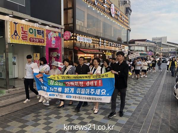 행사는 신입단원 위촉 및 결의문 낭독 등 다짐대회에 이어, 해수욕장 상인 및 관광객들을 대상으로 시민탑에서 머드광장까지 청소년 보호를 위한 가두 캠페인을 전개했다.