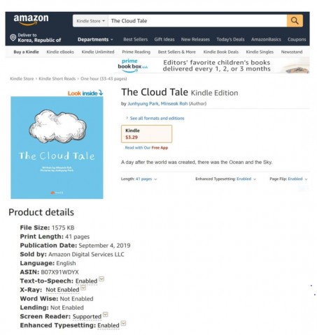 아마존에 유통된 노민석 학생의 The Cloud Tale 도서