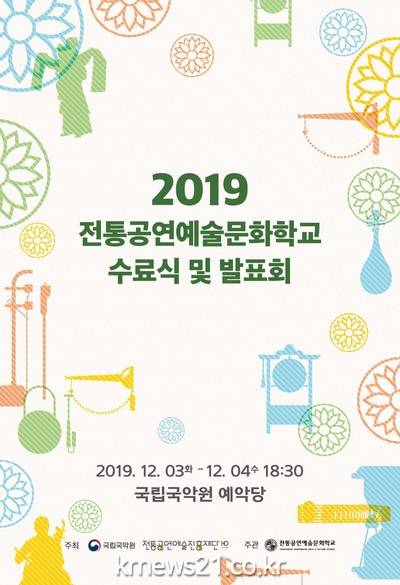 ▲ [사진=홍보포스터]전통공연예술진흥재단(이사장 정성숙)은 12월 3일(화)부터 4일(수)까지 국립국악원 예악당에서 <2019 문화학교 발표회>를 개최한다. 취미로 처용무, 가야금, 해금 등 전통예술을 배워온 일반인 441명이 나만의 무대를 갖는다.