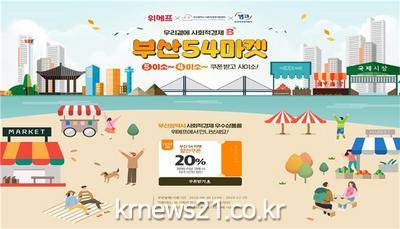 시는 지난 9월부터 소셜커머스 위메프 내 부산 전용관인 「부산54마켓」을 운영하고 있다. 총 20개의 우수 사회적경제기업이 입점해 있으며, 부산을 대표하는 먹거리, 생활용품 등을 PC․모바일앱을 통해 전국의 소비자들과 실시간으로 만나고 있다.