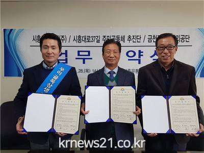 ▲ [사진제공 = 금천구시설관리공단]금천구시설관리공단은 금천구 시흥대로37길 골목 상생 주민공동체 추진단과 금천구 시흥유통관리와 업무 협약을 체결하였다.