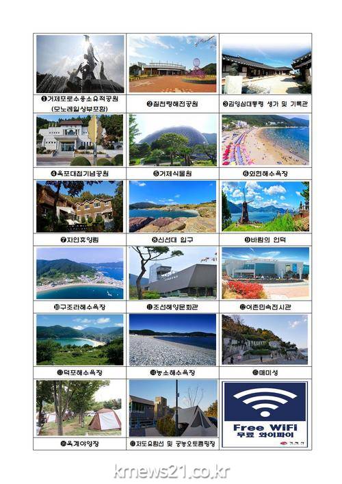 ▲ [무료와이파이 존]거제시(시장 변광용)는 1,000만 관광객 유치 및 관광안내체계 개선을 위해 주요 관광지에 무료와이파이 존 설치를 완료하고 모바일 스마트관광안내(키오스크) 시스템과 연결하여 본격적인 서비스에 들어갔다.