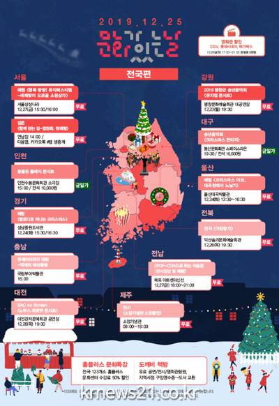 또한 한 해를 마무리하며 가족과 친구, 직장 동료들과 함께 여유로운 시간을 보낼 수 있는 공연과 문화예술 프로그램도 ‘문화가 있는 날’ 주간에 펼쳐진다.