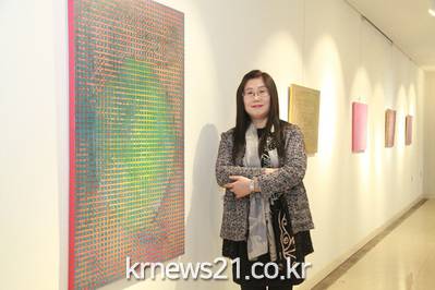 캔버스를 가득 채운 격자무늬는 각양각색의 오방색(五方色)이 중첩된 점들로 묘사되어 신비스런 색채를 나타내고 있다. 사각의 점들은 퍼즐을 맞춘 듯 나름의 질서를 가지고 형체를 만들어 감상자의 무한 상상력을 이끌어 낸다.