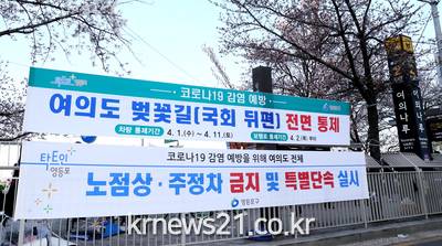 이에 구는 국회3문에서 서강대교 남단까지의 여의서로(1.6km) 봄꽃길을 전면 폐쇄하고 교통 및 보행로에 대한 통제를 결정하며 ‘봄꽃 거리두기’에 팔을 걷어붙이고 나선다. 교통 통제는 4.1.(수)부터 시작해 4.11.(토)까지 11일간 이뤄지며, 보도 통제 기간은 4.2.(목)부터 4.10.(금)까지다.
