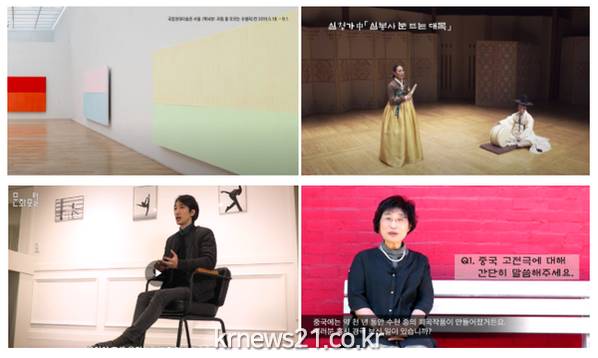 ▲ [(왼쪽부터) 국립현대미술관 ‘박서보작가 전시’/국립국악원 ‘판소리 심청가’/한국문화정보원 ‘문화직업 30 현대무용가편’/국립극단 연극 ‘조씨고아, 복수의 씨앗’ 강의/문화체육관광부 제공]]문화체육관광부(장관 박양우, 이하 문체부)는 코로나19로 온라인 개학을 시행한 전국 초‧중‧고등학교에서 예술교과목(음악‧미술‧무용‧연극)을 온라인으로 원활하게 수업할 수 있도록 한국문화예술교육진흥원(원장 이규석, 이하 교육진흥원)과 함께 문화예술교육 전문 콘텐츠를 제공한다.