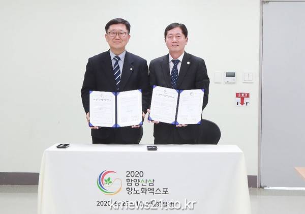 함양산삼항노화엑스포조직위원회(위원장 김경수 경상남도지사)는 지난 24일 함양박물관 세미나실에서 단국대학교(총장 김수복)와 엑스포 성공개최를 위한 업무협약식을 가졌다고 밝혔다.