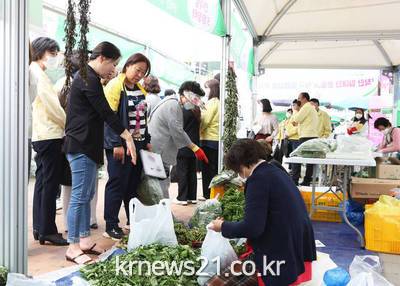 ▲ [사진제공 = 영양군]영양군과 (재)영양축제관광재단은 5월 14일 50여명이 참가한 가운데 영양전통시장 일원에서 산나물 판매 촉진 및 홍보를 위한 ‘전국민 영양군 산나물 보내기 운동’을 실시하였다.