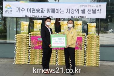 이날 오후 2시 금천구청 광장에서 유성훈 금천구청장, 가수 이현승과 팬카페 회원들이 참석한 가운데 전달식이 진행됐다.