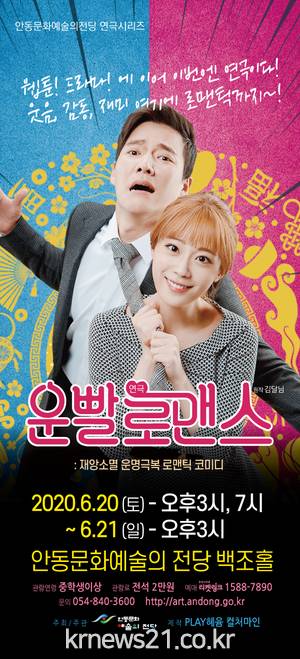 네이버 인기 웹툰 원작이며 배우 류준열, 황정음 주연의 드라마로 방송되었던 ‘운빨 로맨스’가 오는 20일 오후 3시, 7시와 21일 3시 총 3회에 걸쳐 안동문화에술의전당 백조홀 무대에 오른다.