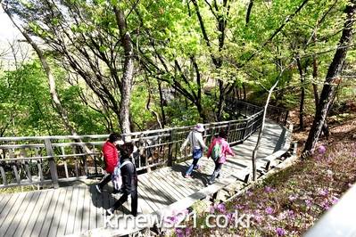 한편, 걷기 코스인 영축산 순환산책로는 경사도 8%이하, 폭2m 이상의 완만한 목재 데크길로, 안전 난간도 설치해 장애인 등 보행약자 뿐 아니라 남녀노소 누구나 숲길을 따라 사색과 힐링이 가능한 산책로다. 또, 전망대에 오르면 수락산과 불암산 등 노원의 전경을 조망할 수 있다.