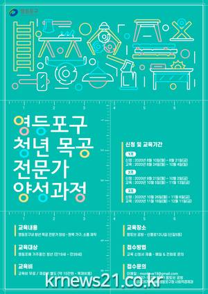 ▲ [사진=홍보포스터]영등포구(구청장 채현일)가 목공 분야에 관심이 있거나 취업을 희망하는 지역 청년들을 지원하기 위한 ‘청년 목공 전문가 양성과정’을 운영한다.