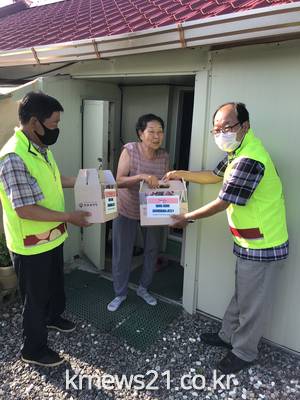 물품을 전달받은 마을 주민은 “나쁜 병이 돌아서 밖에도 못 나가고 걱정이 많았는데 이렇게 직접 찾아와 선물도 주고 안부도 확인해 주니 마음이 한결 든든하다” 며 감사를 표했다.
