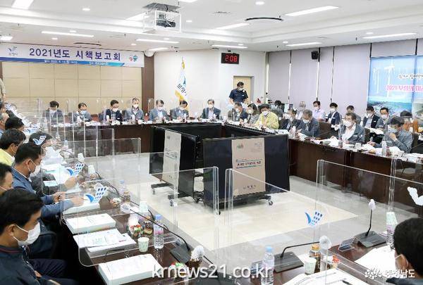 보령시는 14일 시청 중회의실에서 김동일 시장과 각 부서장 및 정책자문단 등 40여 명이 참석한 가운데 2021년도 시책 보고회를 가졌다고 밝혔다.
