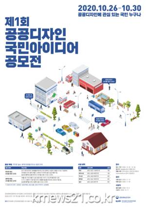 ▲ [사진=홍보포스터]문화체육관광부(장관 박양우, 이하 문체부)는 한국공예・디자인문화진흥원(원장 김태훈, 이하 진흥원)과 함께 10월 26일(월)부터 30일(금)까지 ‘편리한 일상, 쾌적한 환경을 만드는 공공디자인’이라는 주제로 ‘제1회 공공디자인 국민아이디어 공모전’을 개최한다.