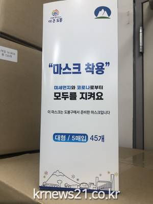 ▲ [사진제공 = 도봉구]도봉구(구청장 이동진)는 코로나19와 미세먼지로 인한 호흡기 질환 예방을 위해 마스크 구입에 어려움을 겪는 저소득층을 대상으로 KF94 보건용 마스크 982,800여매를 지원한다.