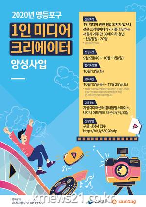 ▲ [사진=홍보포스터]영등포구(구청장 채현일)가 1인 미디어 분야로 취·창업을 희망하는 청년 지원을 위한 ‘1인 미디어 크리에이터 양성 사업’ 운영에 나섰다.