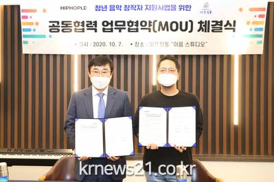 구는 10월 7일 창동 도시재생거점시설 이음 스튜디오에서 아시아 최대 음악웹진인 힙합LE와 ‘청년음악인 온라인 창작지원’ 협약식을 개최했다.