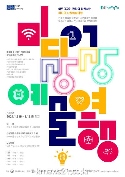▲ [사진=홍보포스터]서울 노원구(구청장 오승록)가 관내 중·고등학교 청소년들을 대상으로 미래 문화예술 분야 진로체험 프로그램 ‘미디어 상상예술여행’ 강좌를 운영한다고 밝혔다.