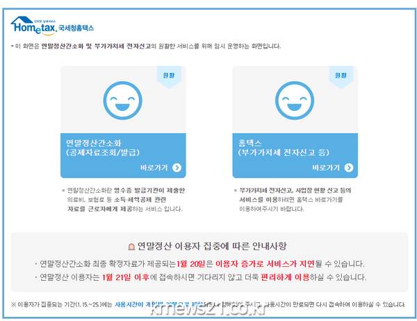 ▲ [홈택스 홈페이지 캡처]2020년을 정리하는 연말정산 간소화 서비스가 오늘 오전 6시 개통했다. 홈택스에서 연말정산 소득·세액공제에 필요한 증명자료를 조회 및 출력할 수 있다.