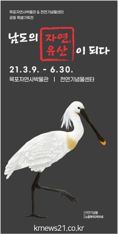 ▲ [사진=홍보포스터]문화재청(청장 김현모)과 목포시(시장 김종식)는 천혜의 아름다움을 자랑하는 남도 지역의 자연유산 자원과 천연기념물을 연계한 공동 특별기획전 ‘남도의 자연, 유산이 되다’를 9일 오후 2시 개막식을 시작으로 3월 10일부터 6월 30일까지 목포자연사박물관 기획전시실에서 개최한다.