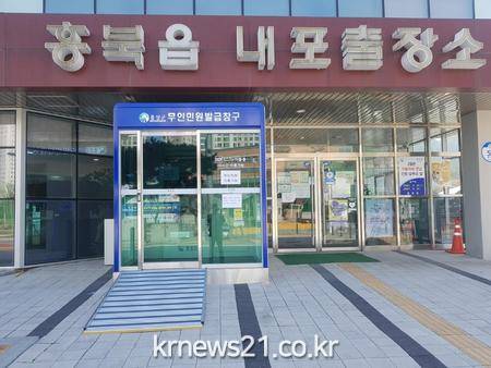 군은 지난해 홍성군 민원지적과, 홍성읍 행정복지센터에 이어 올해 홍북읍 내포출장소에 옥외용 민원발급기를 설치하며 코로나19 확산에 따른 비대면 행정수요에 대응하고 24시간 연중무휴 운영으로 행정만족도 향상에 앞장서고 있다.