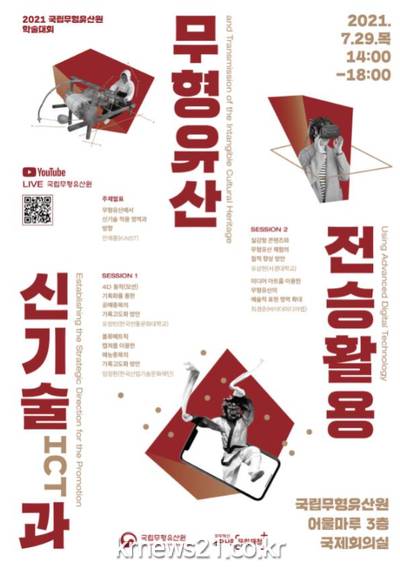 ▲ [사진=홍보포스터]문화재청 국립무형유산원(원장 이종희)은 디지털 대전환의 시대에 체계적으로 대응하기 위하여 <신기술(ICT)과 무형유산 전승활용> 학술대회를 오는 7월 29일 오후 2시부터 국립무형유산원 국제회의실에서 개최한다.