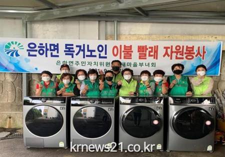 ▲ [사진제공 = 홍성군]은하면은 주민자치위원회(위원장 신동규), 새마을부녀회(회장 김미자)와 함께 민관협력으로 지역의 독거노인이나 어려운 이웃을 위한 이불빨래 자원봉사를 실시한다고 6일 밝혔다.