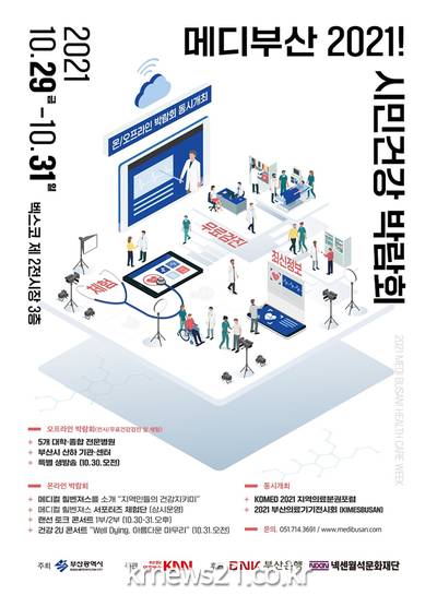 ▲ [사진=홍보포스터]부산시(시장 박형준)는 오는 29일부터 10월 31일까지 벡스코 제2전시장 3층에서 「메디부산 2021! 시민건강박람회」를 개최한다고 밝혔다.