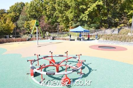 마지막으로 아이들이 즐길 수 있는 놀이기구 3종도 새롭게 설치되었다. 기존 놀이터에서 보기 힘든 모양의 회전시소를 비롯해 회전자전거와 트램플린까지 영유아까지 함께 즐길 수 있도록 했다.