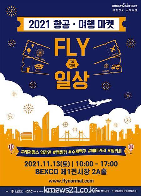 ▲ [사진=홍보포스터]부산시(시장 박형준)는 단계적 일상회복에 발맞춰 여행심리 회복을 위해 한국공항공사, 벡스코 등과 공동으로 오는 13일, 벡스코 제1전시장에서 ‘FLY to the 일상! 2021 항공여행마켓’ 행사를 개최한다고 밝혔다.