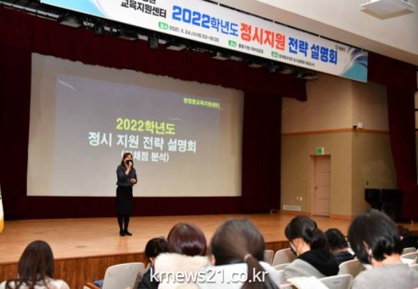 ▲ 사진=중랑구중랑구(구청장 류경기)는 24일 오후 구청 지하대강당에서 대입 수험생과 학부모를 대상으로 방정환교육지원센터 프로그램의 일환인 ‘2022학년도 대입 정시 지원 전략 설명회’를 개최했다.