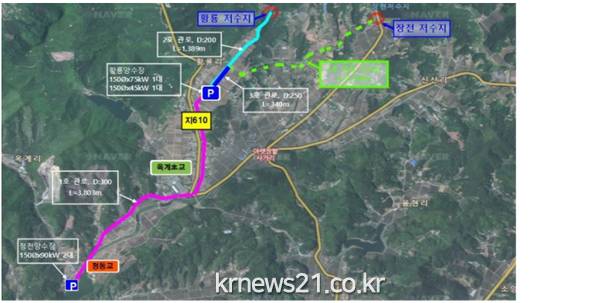 이 사업을 통해 청천저수지에서 황룡저수지와 장현저수지까지 도수로 7.891km를 매설해 청천저수지의 여유수량을 두 저수지에 공급할 수 있게 됐다.