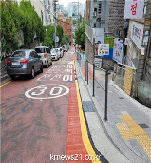 이어서 ‘보도 신설 등 보행환경 개선’이다. 급경사로 인해 어르신 등 보행약자의 통행이 어려운 석계로13길의 보도를 신설하고, 안전 손잡이 설치와 주택가 이면도로 칼라블록 포장을 통해 보행자들이 안전하게 통행할 수 있도록 했다.