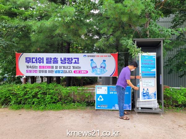 ▲ 사진=도봉구도봉구(구청장 오언석)가 폭염으로부터 구민의 안전을 위해 하천변과 도심공원에 시원한 생수를 제공하는 ‘무더위탈출 냉장고’를 운영한다.